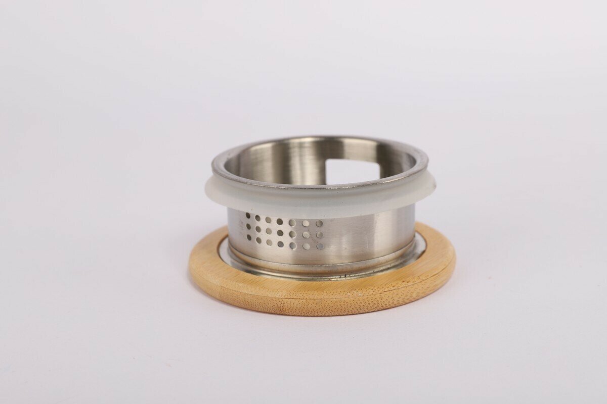 Оснащен удобной ручкой золотого цвета, которая не нагревается при подаче горячих напитков. Крышка выполнена из бамбука с встроенным металлическим фильтром, который блокирует попадание чайных листьев и других индгридиентов напитка.