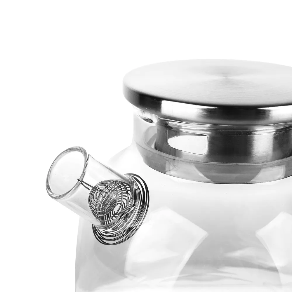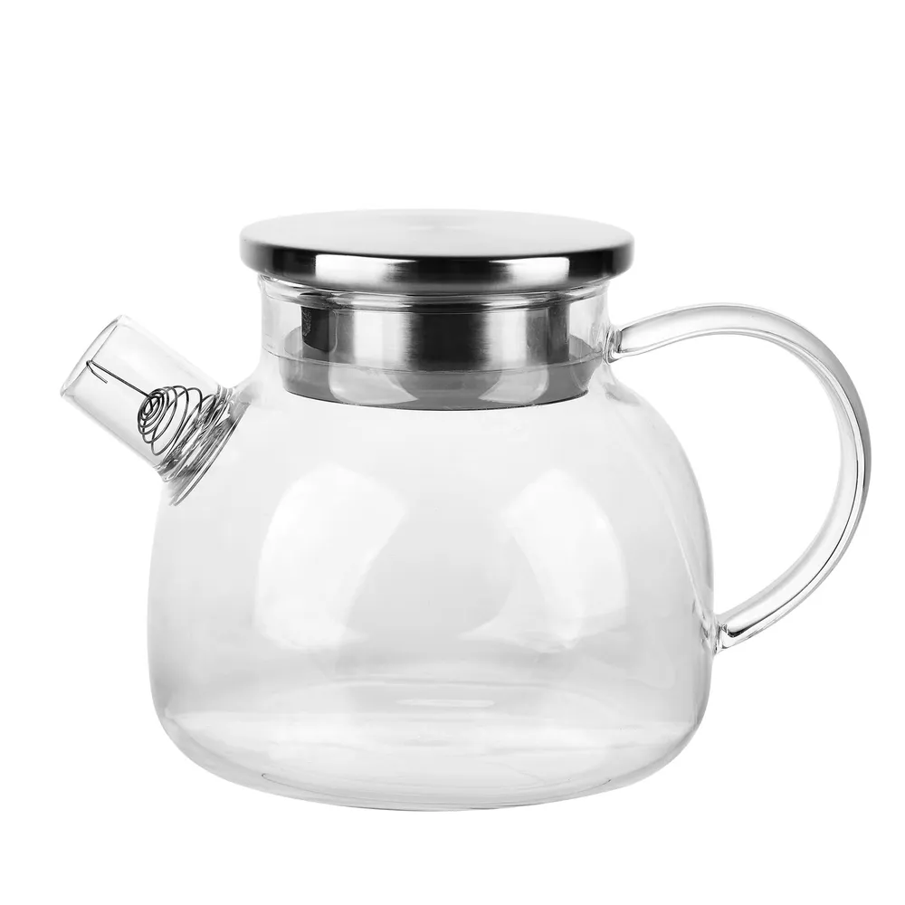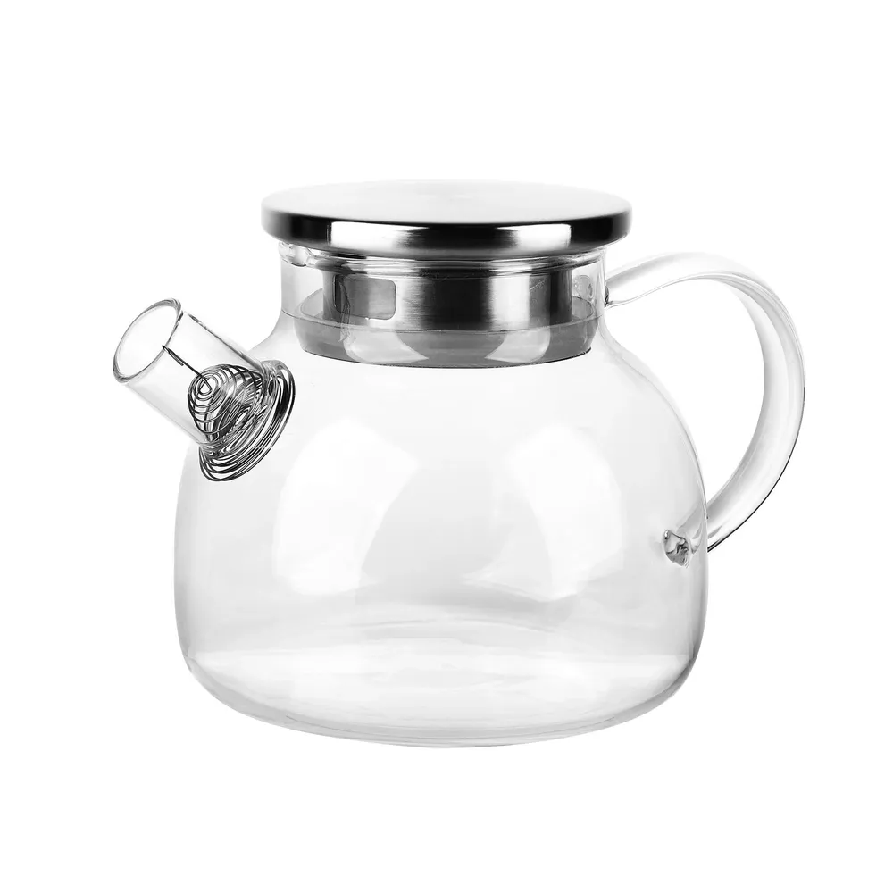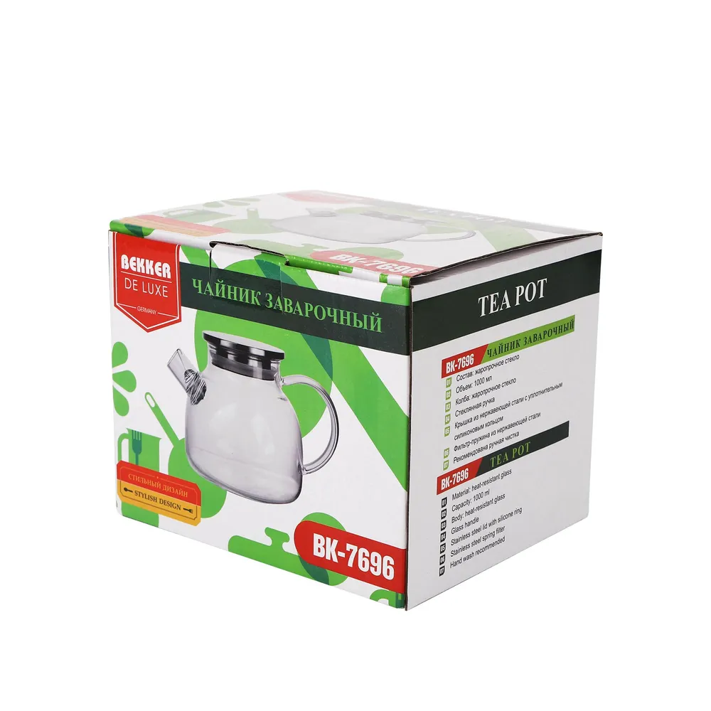 Чайник заварочный Bekker 1000 мл изготовлен из прозрачного жаропрочного стекла. Классическая округлая форма чайника станет украшением любого стола. Узкий носик, который не выпускает аромат Вашего любимого напитка, сделает чайную церемонию еще более приятной. Съемный металлический фильтр-пружина легко моется. В стеклянном чайнике можно в полной мере насладиться "спектаклем" раскрытия чаинок и плавного завораживающего окрашивания напитка в неповторимый цвет. Стекло не впитывает и не выделяет посторонний запах, поэтому Вы почувствуете каждую нотку вкуса заваренного чайного или травяного напитка. Литая стеклянная ручка выполнена в удобной форме для обхвата ладонью, не нагревается. Изюминкой является металлическая крышка, стильно украшающая заварочный чайник. Рекомендована ручная чистка.