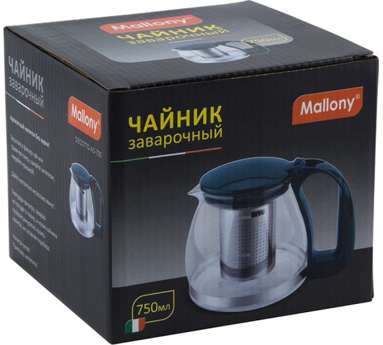 Заварочный чайник Mallony DECOTTO-AS-750 объем: 0,75 л с пластиковой ручкой фильтр из нержавеющей стали 910111 предназначен для заваривания чая и других горячих напитков.