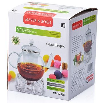 Заварочный чайник MAYER&BOCH изготовлен из термостойкого боросиликатного стекла. Чайник оснащен стеклянной подставкой для подогрева, рассчитанной на одну греющую свечу. Изделия из стекла не впитывают запахи, благодаря чему Вы всегда получите натуральный, насыщенный вкус и аромат напитков. Заварочный чайник из стекла удобно использовать для повседневного заваривания чая практически любого сорта, но цветочные, фруктовые, красные и желтые сорта чая лучше других раскрывают свой вкус и аромат при заваривании именно в стеклянных чайниках, а также сохраняют все полезные ферменты и витамины, содержащиеся в чайных листах. Стеклянный фильтр гарантирует прозрачность и чистоту напитка от чайных листьев, при этом сохранив букет и насыщенность чая. Прозрачные стенки чайника дают возможность насладиться насыщенным цветом заваренного чая. Изящный заварочный чайник MAYER&BOCH будет прекрасно смотреться в любом интерьере. Не подходит для использования в микроволновой печи.