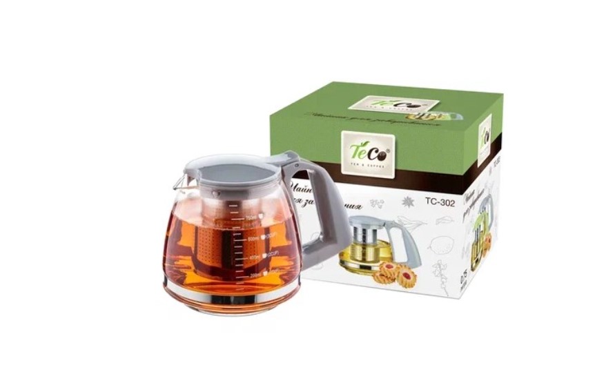 Заварочный чайник TC-302 объёмом 750 мл предназначен для заваривания напитков. Корпус чайника изготовлен из термостойкого стекла, на котором изображена шкала измерения объема жидкости внутри чайника. Благодаря прозрачности стекла, удобно оценить степень заваривания напитка. Крышка и ручка изготовлены из пищевого пластика. Крышка легко открывается путем простого нажатия пальцем на специальный рычажок. В комплект также входит сито из нержавеющей стали, которое предотвращает попадание чайных листьев в напиток.