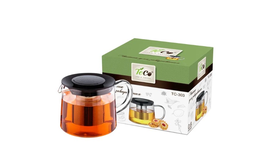 Заварочный чайник TC-303 объёмом 600 мл предназначен для заваривания напитков. Корпус чайника изготовлен из термостойкого стекла, на котором изображена шкала измерения объема жидкости внутри чайника. Благодаря прозрачности стекла, удобно оценить степень заваривания напитка. Крышка и ручка изготовлены из пищевого пластика. Крышка легко открывается путем простого нажатия пальцем на специальный рычажок. В комплект также входит сито из нержавеющей стали, которое предотвращает попадание чайных листьев в напиток.