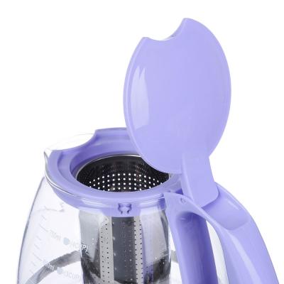 Заварочный чайник объемом 750мл из жаропрочного стекла, с пластиковой ручкой и крышкой, с ситечком из нержавеющей стали, подходит для заваривания чая и трав.
