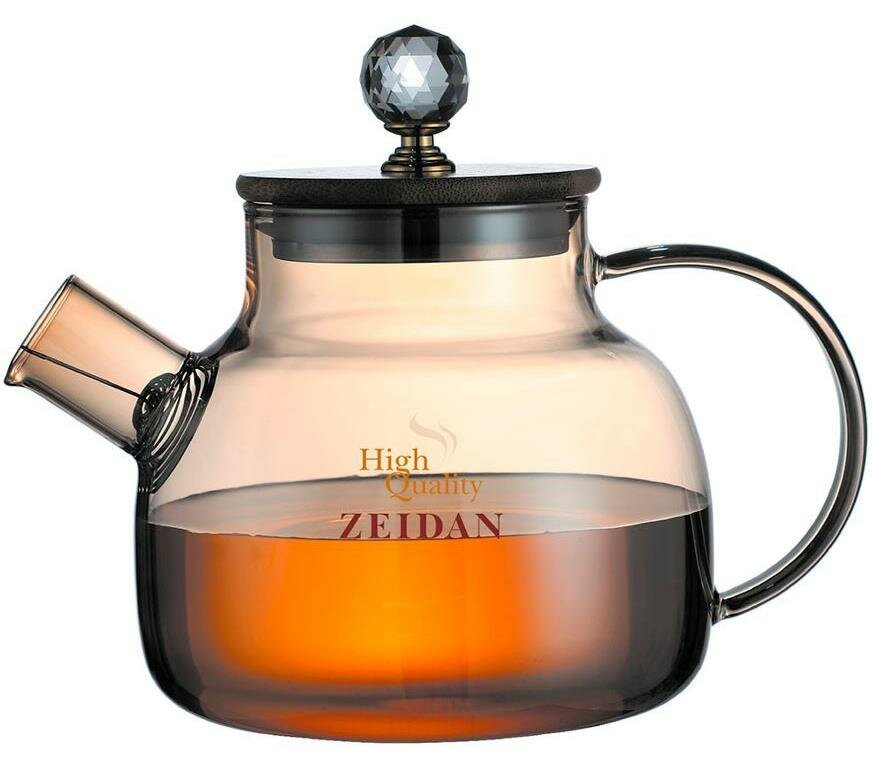 Чайник заварочный ZEIDAN Z-4469. Объем 1000 мл. Медовый цвет. Корпус изготовлен из термостойкого боросиликатного стекла. Крышка - бамбук с декоративной ручкой "кристалл". Возможность использования на плите. Съемный фильтр-пружина из высококачественной нержавеющей стали, подарочная упаковка.