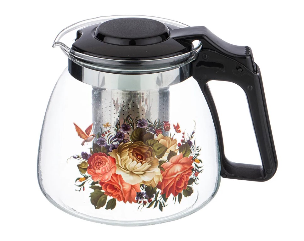 Заварочный стеклянный чайник TM AGNESS является прекрасным украшением стола. Чайник удобен в использовании: достаточно нажать на клапан, чтобы открыть чайник и наполнить его содержимым. Фильтр из высококачественной стали позволяет отфильтровать даже самые маленькие чаинки. В таком чайнике заваривают не только чай, но и другие лекарственные травы или плоды шиповника для повышения иммунитета. Сквозь прозрачные стенки можно наблюдать за постоянно меняющейся красотой напитка. Коллекционный дизайн "РОСКОШНЫЙ САД" создает уютную атмосферу во время чаепития.