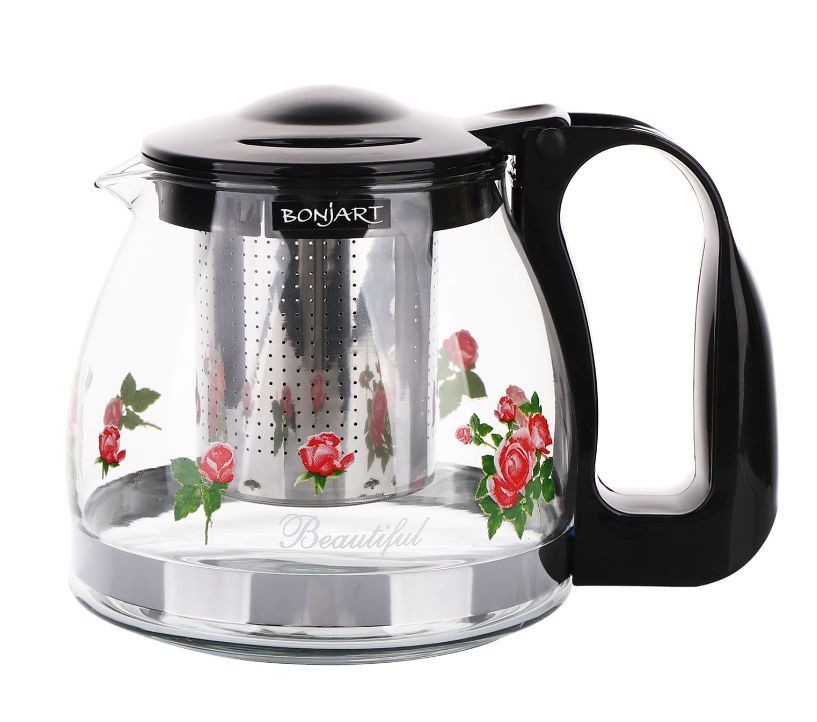 Заварочный чайник 700 мл., Жаропрочное стекло, деколь, метал. фильтр