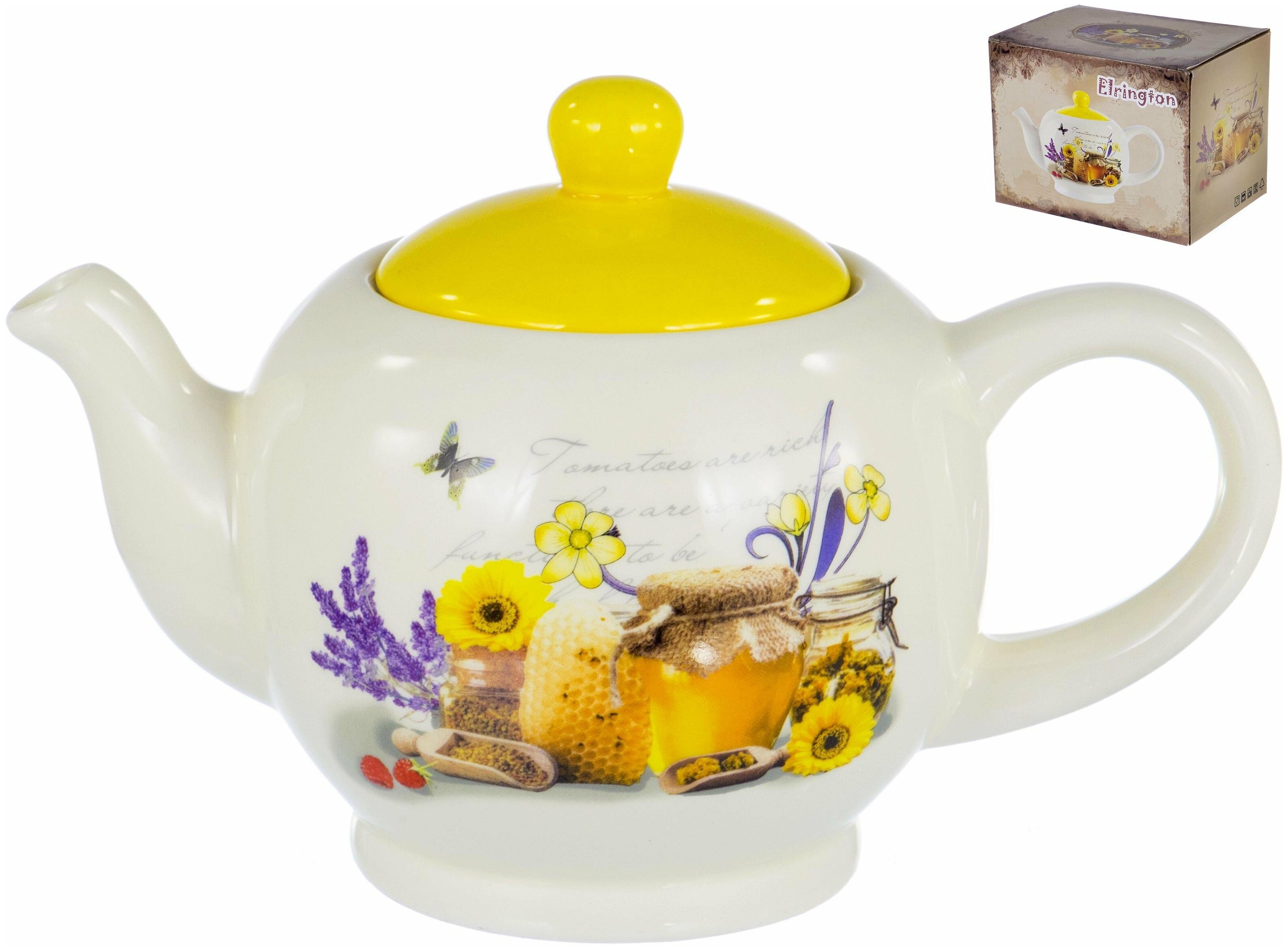 Чайник 950мл, серия миель, изготовлен из высококачественного доломита с глазурованным покрытием и оформлен красочным изображением.
