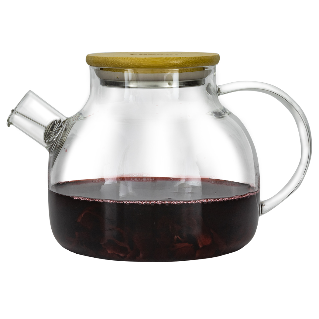 аварочный чайник FUSION 02-090-01 классической формы из термостойкого идеально прозрачного боросиликатного стекла с фильтром-пружинкой и плотно прилегающей крышкой из бамбука. Съемный металлический фильтр-пружинка идеально фильтрует напиток и незаменим при заваривании мелко-листового чая и травяных сборов. Боросиликатное стекло не впитывает загрязнения, не поглощает запахи и не выделяет вредных веществ. Чайник идеален для чайных церемоний и подойдет под любой интерьер.
