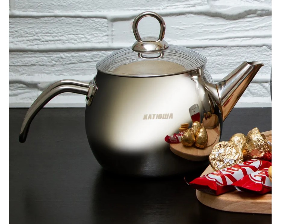 Чайник заварочный Катюша "София" изготовлен из высококачественной хромоникелевой нержавеющей стали 18/10. Чайник поставляется в комплекте с металлической крышкой. Размеры д*ш*в: 22,0*14,0*13,0 см. Предназначен для заваривания. Объем: 1,2л.