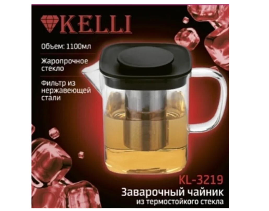 Заварочный Чайник Kelli KL-3219 из термостойкого стекла. Объём: 1100 мл. Изготовлен из жаропрочного стекла, а его фильтр из нержавеющей стали. Пластиковая крышка. Удобный носик чайника позволит аккуратно налить содержимое в чашку. Заварник легко чистится. Подходит для посудомоечных машин.