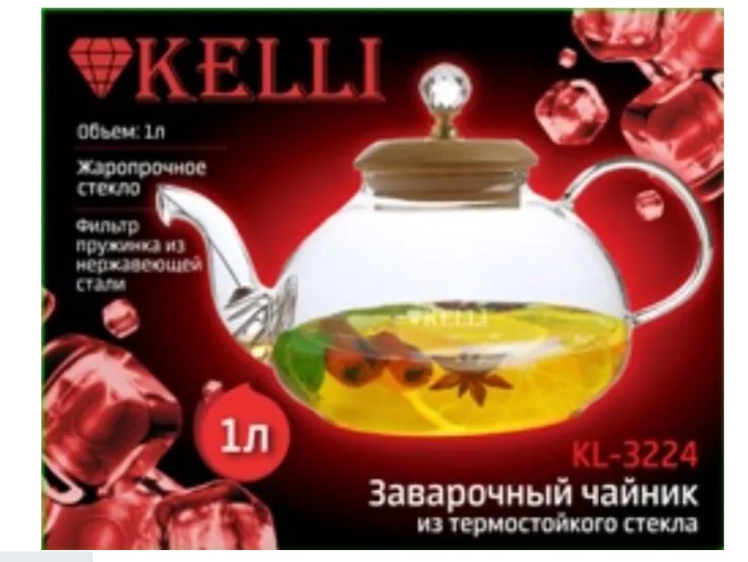 Заварочный чайник Kelli KL-3224, 1000 мл. Чайник изготовлен из высококачественного боросиликатного стекла с крышкой из бамбука. Ручка на крышке "под кристалл". Преимущества боросиликатного стекла в том, что чайник из него получается легким, термостойким, не впитывает запахов, а также не тускнеет даже по прошествии времени. Удобная не нагревающаяся ручка из стекла защищает руки от ожогов. Съемный фильтр-пружинка из высококачественной нержавеющей стали легко моется. Чайник можно использовать на источниках тепла – газовых, галогеновых, электрических и стеклокерамических плитах. Компактная подарочная упаковка.