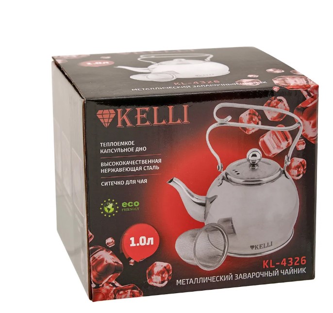 Чайник Kelli KL-4326 объемом 1 л, по этому чайник способен вскипятить воду для нескольких чашек чая. Выполнен в серебристом корпусе, корпус этого домашнего помощника произведен из качественной нержавеющей стали, очистка которой от накопившихся загрязнений не займет у вас много времени.