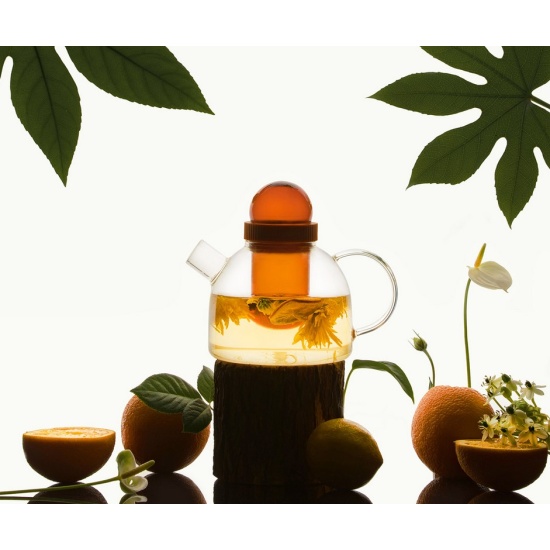 Двухцветное стекло, крышка и заварник в форме цилиндра образуют единую сферическую композицию, что делает чайник изящнее и невесомее. Эстетичность и удобство конструкции превратят заваривание чая в приятный и умиротворяющий процесс.