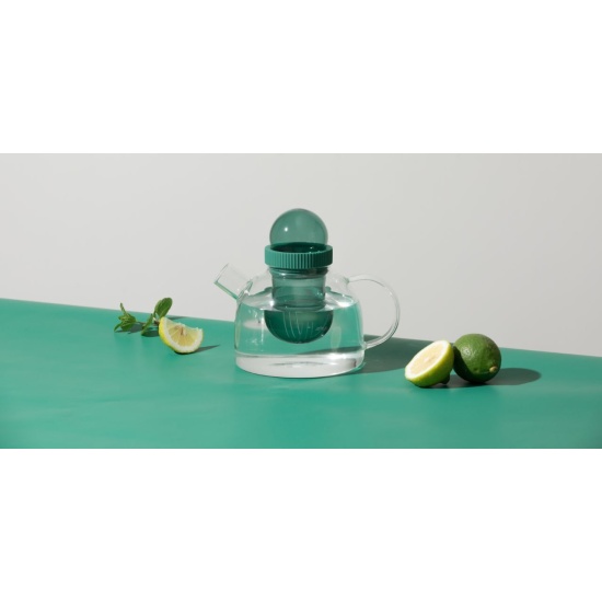 Двухцветное стекло, крышка и заварник в форме цилиндра образуют единую сферическую композицию, что делает чайник изящнее и невесомее. Эстетичность и удобство конструкции превратят заваривание чая в приятный и умиротворяющий процесс.