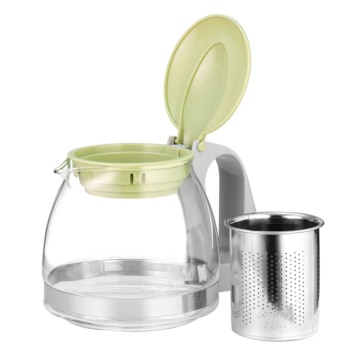 Чайник для заваривания LARA – отличное решение для приятного чаепития. Объема чаши хватит, чтобы заварить 2-3 порции любимого напитка. Эргономичная ручка и крышка с курком дают возможность использовать его одной рукой. При производстве были использованы только экологически чистые материалы. Чайник классической формы выполнен из прозрачного силикатного стекла, стильная крышка и ручка – из пищевого пластика. Кольцо из нержавеющей стали с хромированной отделкой крепит ручку к колбе и дополняет внешний вид. Жесткий фильтр для заваривания из нержавеющей стали легко снимать и чистить.
