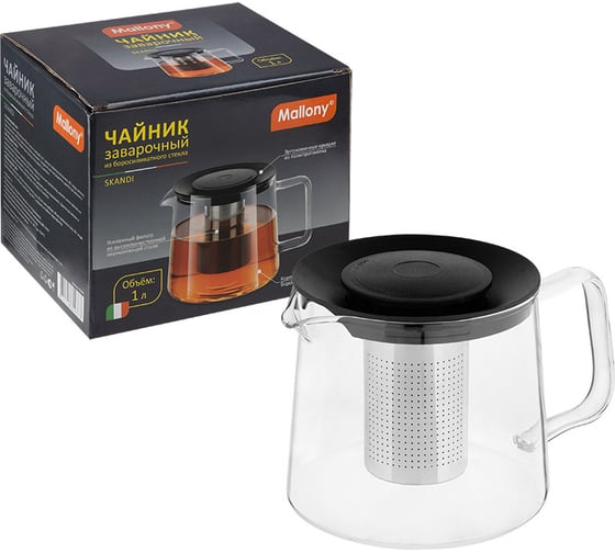 Технические характеристики чайника заварочного Mallony skandi, объем 1000 мл, из боросиликатного стекла, с прямоугольной ручкой 910125