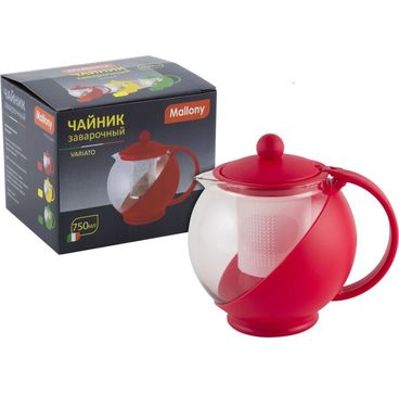 Чайник/кофейник Для заваривания кофе, чая, травяных сборов. Объем: 0.75 л Пластиковый корпус, колба из жаропрочного стекла (коэффициент линейного расширения - 3,3), фильтр из нержавеющей стали. Цвета в ассортименте (красный, зеленый, желтый) Размер товара без упаковки: 15*12*14 см Упаковка: цветная картонная коробка.