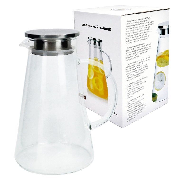 Заваривание чая – тонкое искусство, которое помогает человеку соединиться с природой, достичь гармонии и духовного просветления. Стеклянный заварочный чайник объемом 1800 мл станет для вас проводником в мир чайных церемоний и поможет расслабиться после напряженного рабочего дня. Благодаря стеклянным стенкам вы сможете наблюдать за медитативным завариванием чая и внутренне настраиваться на приятный вечер. Чайник позволит вам раскрыть все оттенки вкуса полезных травяных чаев, фруктовых и ягодных напитков. Крышка из нержавеющей стали с силиконовым уплотнителем будет поддерживать температуру внутри чайника на протяжении нескольких часов, а стальное ситечко поможет отфильтровать ваш напиток. Заварочный чайник изготовлен из безопасного жаропрочного стекла, которое не впитывает запахи и не влияет на вкус готового напитка. За счет прочного стекла чайник также выдерживает колебания температур от -20 до +100 градусов и мытье в посудомоечной машине. Строгий чайник элегантно дополнит кухонный сервиз, поможет вам получить