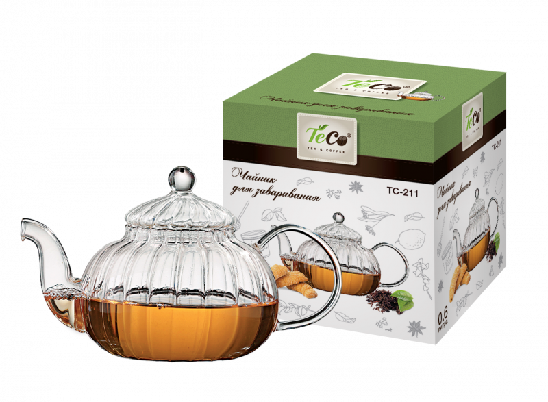 Чайник заварочный TC-211, 600 мл из стекла c ситом и крышкой из стекла