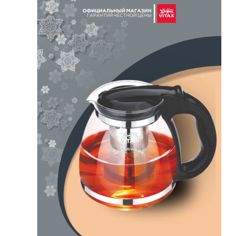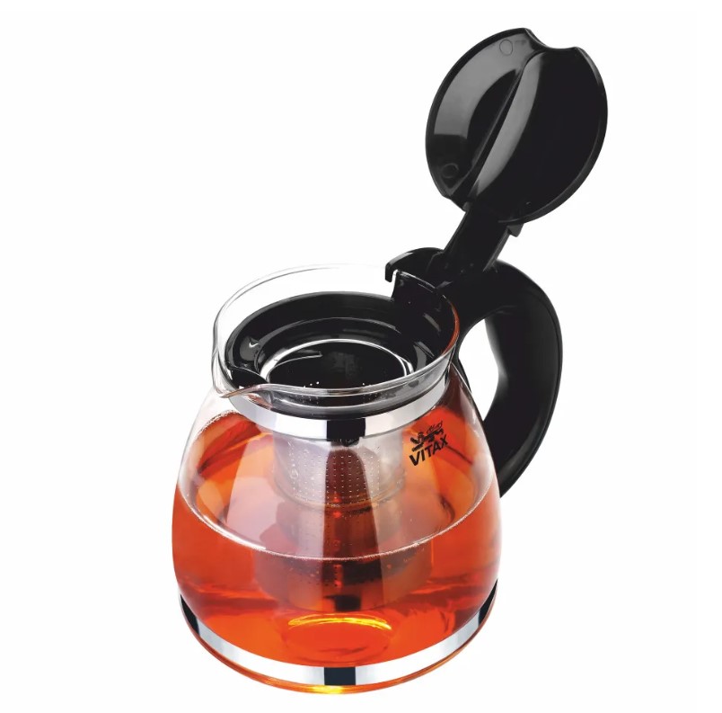 Чайник заварочный Vitax Лалворт VX-3303 придется по душе людям, которые чаю в пакетиках предпочитают листовой чай, а также любят заваривать травяные чаи. Прозрачный чайник изготовлен из жаропрочного стекла, поэтому вы сможете наливать в него кипяток, который лучше всего справится с завариванием чайных листьев.Ручка и крышка Vitax Лалворт VX-3303 сделаны из пластика, который не нагревается при наличии в чайнике горячей воды, а это способствует безопасному пользованию. Фильтр, в который насыпают листья чая, содержащийся внутри чайника, изготовлен из нержавеющей стали, поэтому является долговечным аксессуаром, который по истечении многих месяцев не потеряет своих свойств. Внимания заслуживает и комфортная система открывания крышки.