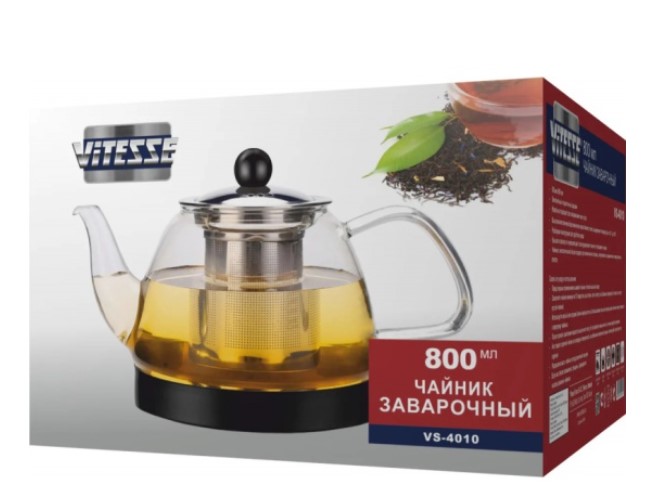 Заварочный чайник "Vitesse" станет достойным и функциональным аксессуаром вашей кухни. Он изготовлен из жаростойкого стекла. Изделия из стекла не впитывают запахи, благодаря чему вы всегда получите натуральный, насыщенный вкус и аромат напитков.