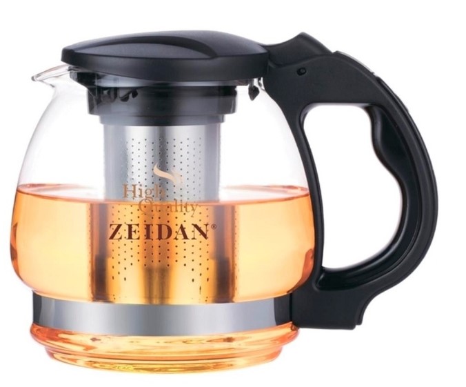 Заварочный чайник Zeidan Z-4383, 1500 мл. Изготовлен из высококачественного термостойкого стекла. Чайник является легким, термостойким, не впитывает запахов, а также не тускнеет даже по прошествии времени. Удобная ненагревающаяся ручка из стекла защищает руки от ожогов. Съемный фильтр из высококачественной нержавеющей стали легко моется. Чайник можно использовать на источниках тепла газовых, галогеновых, электрических и стеклокерамических плитах.