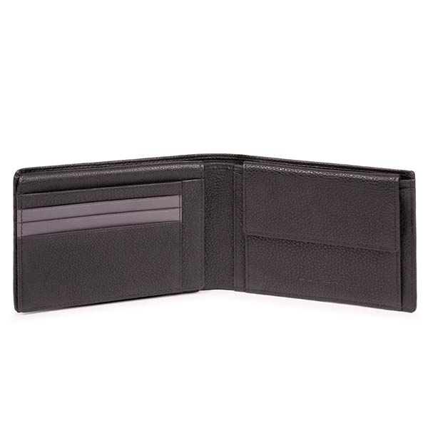 Внутреннее устройство отделения для купюр, кармашки для кредитных и визитных карт, карман для мелочи, отделение для документов