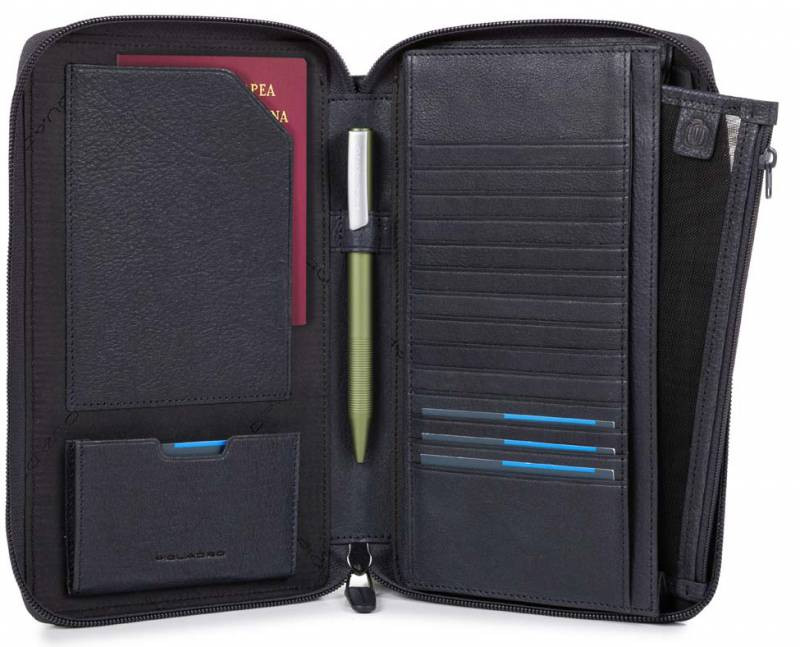 Описание: Отделение для купюр, 14 карманов для кредитных карт, съемное отделение на молнии, держатель для пишущего инструмента, карман для визиток и отделение для документов. Ремешок на запястье.