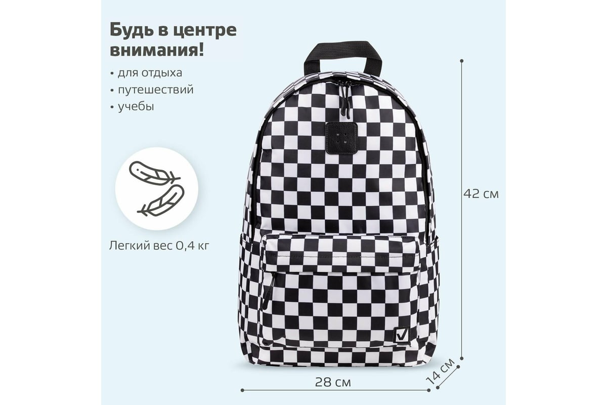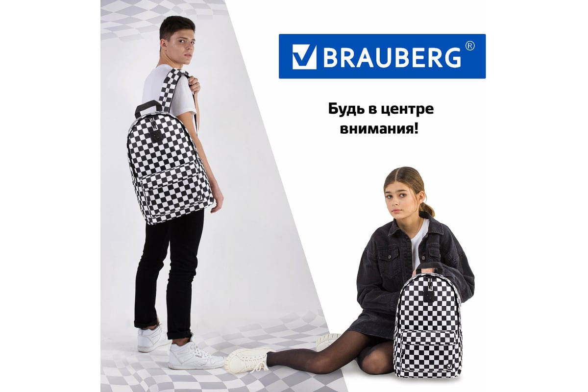 Универсальный рюкзак BRAUBERG POSITIVE, потайной карман, Black and White, 42x28x14см, 270777 занимает лидирующие позиции по популярности среди молодежи.