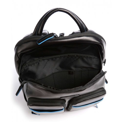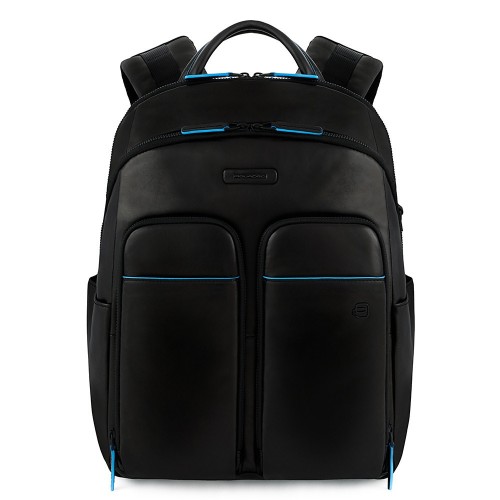 Мужской рюкзак с двумя просторными отделениями на молнии. Выполнен из натуральной кожи с синей окантовкой. Оборудован защитой от незаконного RFID-сканирования. Внутри карман на молнии, держатели для пишущих инструментов, отделение для мобильного телефона, кармашек для наушников AirPods и дополнительные отделения. Снаружи на передней стенке дополнительные отделения. На боковых стенках карманы для зонта или бутылки. Возможность разместить ноутбук до 14 дюймов и планшетный компьютер до 11 дюймов. Система крепления к ручке багажной сумки с потайным карманом. Плечевые ремни регулируются по длине и оснащены держателем для очков. Артикул:CA5574B2V/N