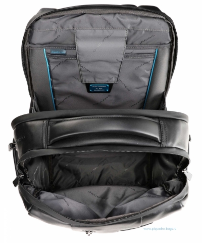 Кожаный бизнес-рюкзак из коллекции Piquadro Urban. Рюкзак изготовлен из мягкой телячьей кожи высочайшего качества с использованием матовой черненой фурнитуры. Это немного упрощеная флагманская модель рюкзака CA4550UB00BM, без "фишек", но все также с высокой функциональностью и превосходным дизайном. В рюкзаке предусмотренно 2 отделения, одно из которых имеет отсек для 15.6 дюймового ноутбука и планшета, сбоку расположен карман для зонта, спереди карман для телефона и ручек, на лямках предусмотрен держатель для очков и карман для пластиковой карты. На задней стенке рюкзака находится карман на молнии с RFID защитой, а также крепление на ручку чемодана. Вес: 1242 гр.