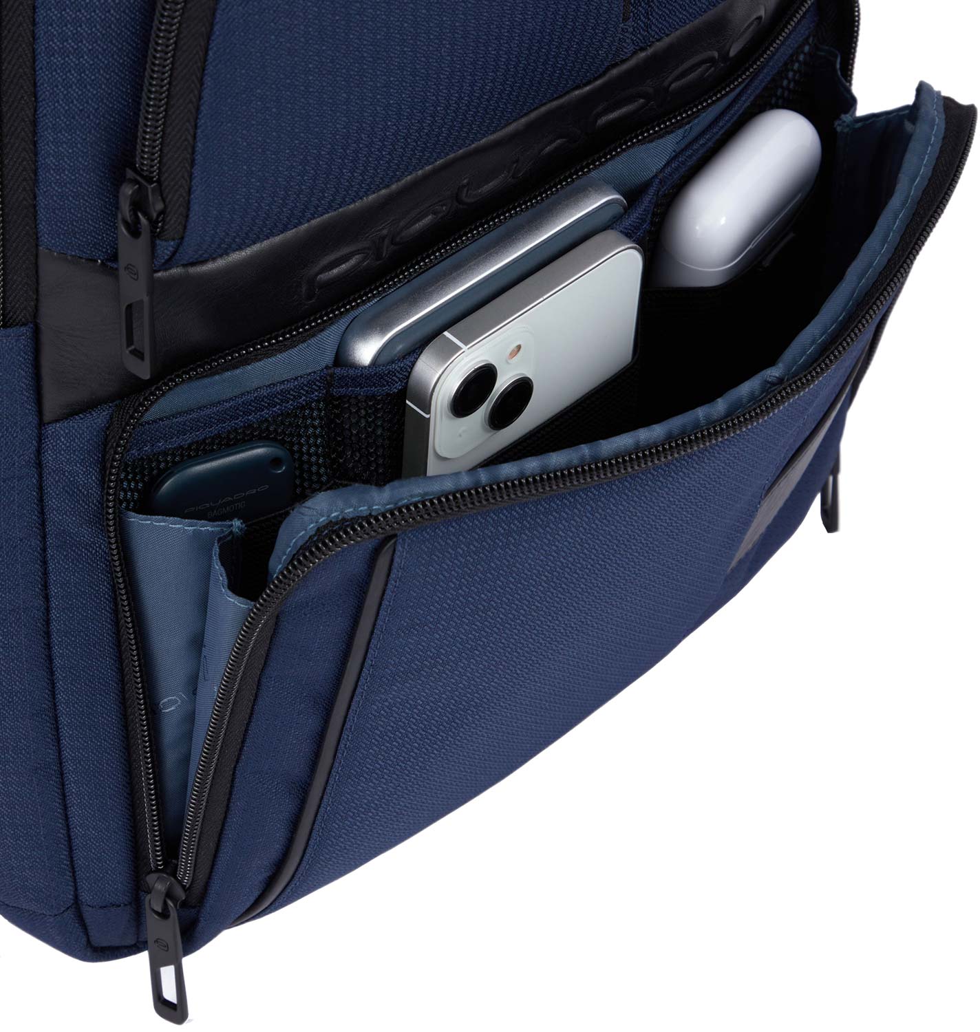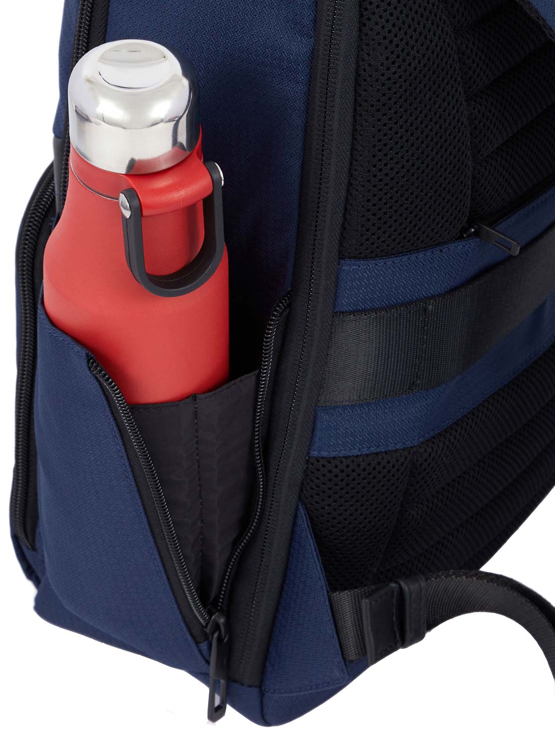 Рюкзак городской. 2 основных отделения на молнии. Внутри: отделение для ноутбука до 14 дюймов, отделение для планшета, мобильного телефона и мелочей, держатели для пишущих инструментов. Снаружи: на передней стенке 2 кармана на молнии, в одном из которых отделения для гаджетов и мелочей, по бокам карманы для зонта и бутылки. Система крепления к ручке багажной сумки, которая очень удобна в частых путешествиях. Регулируемые плечевые ремни с петлей для ключей.
