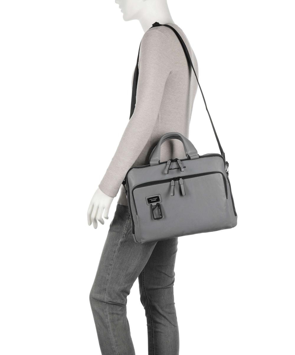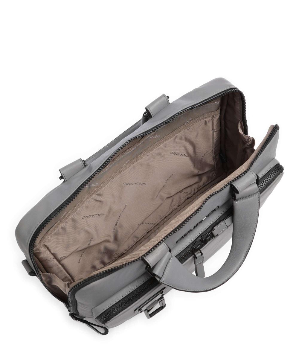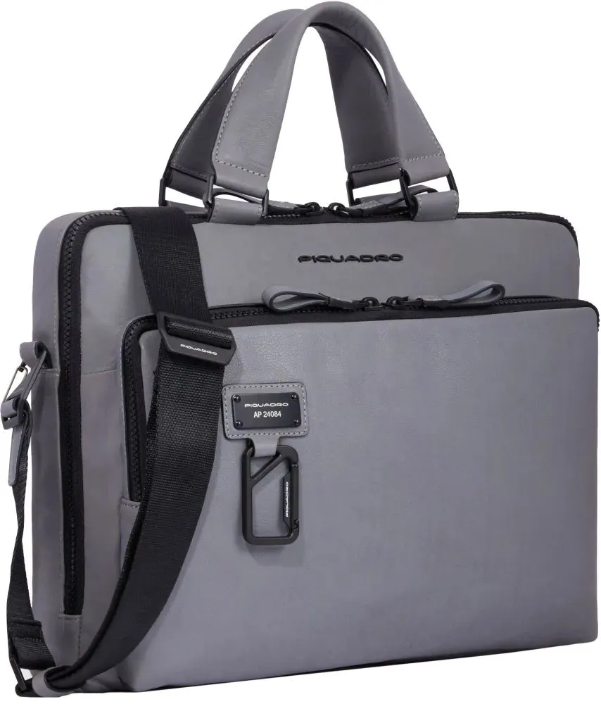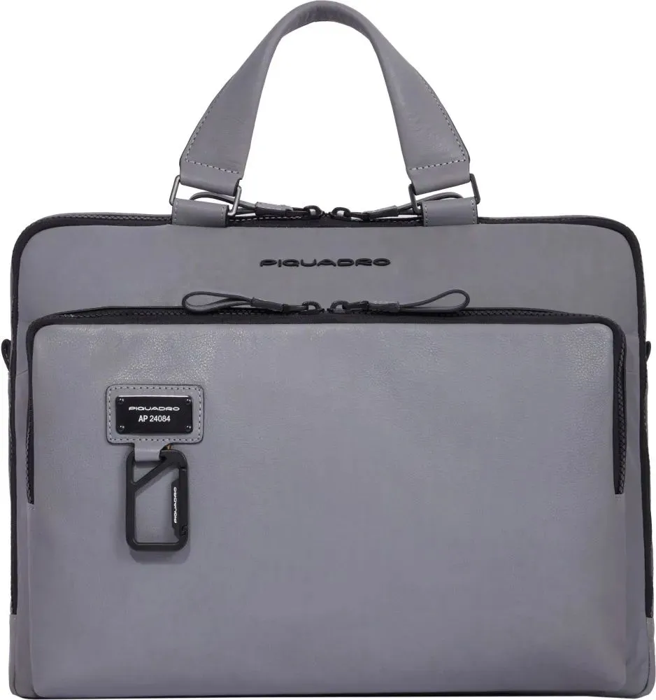 Стильная кожаная сумка для ноутбука и документов из коллекции Piquadro Harper. Изготовлена из высококачественной телячьей кожи растительного дубления. Сумка имеет одно отделение с отсеком для 14 дюймового ноутбука, телефона, ручек и документов. На передней части расположены вместительный карман на молнии, на задней части крепление на ручку чемодана. Плечевой ремень в комплекте. Вес: 878 гр. Оптимальная по размеру и функциональности сумка на каждый день.