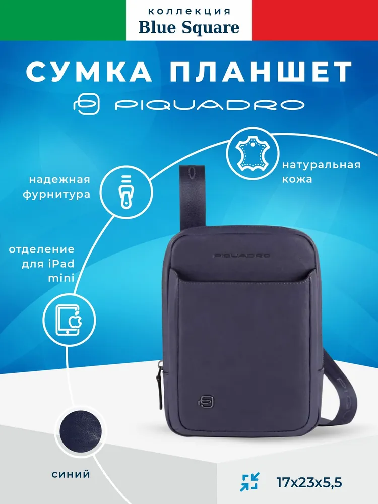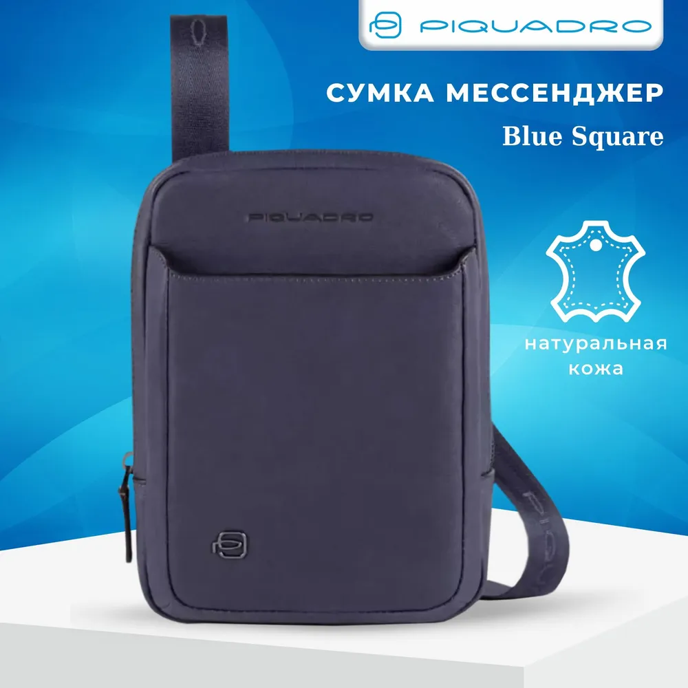 Сумка кожаная синяя Piquadro (Пиквадро), коллекция Black Square,CA3084B3/BLU4.