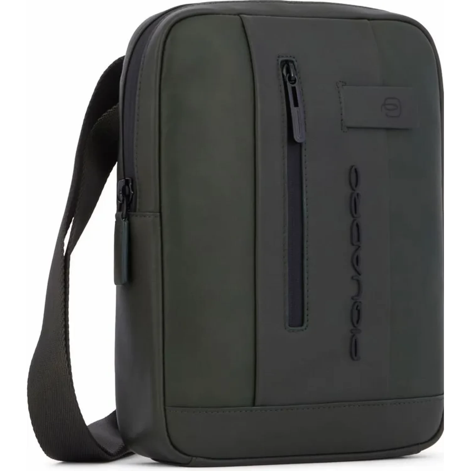 Кожаная сумка через плечо из новой коллекции Piquadro Urban. Сумка изготовлена из гладкой телячьей кожи с использованием черненой матовой фурнитуры. Имеет одно отделение с карманом для 10,5 дюймового планшета, а также отсек для телефона. На передней части расположен вертикальный карман на молнии и крепление для наушников. Это одна из самых популярных моделей сумок через плечо, оптимальные размеры сумки с удобством позволяют использовать её каждый день для переноски ключей, кошелька, водительских прав и прочих важных вещей.