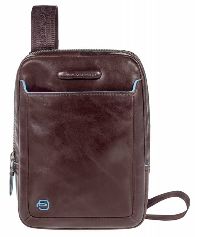Описание: Вертикальная сумка на плечевом ремне Piquadro выполнена из телячьей кожи с легким глянцевым блеском и отделана голубым кантом. Одно основное отделение, отделение для mini Ipad, карман на молнии, съемное крепление для ключей.