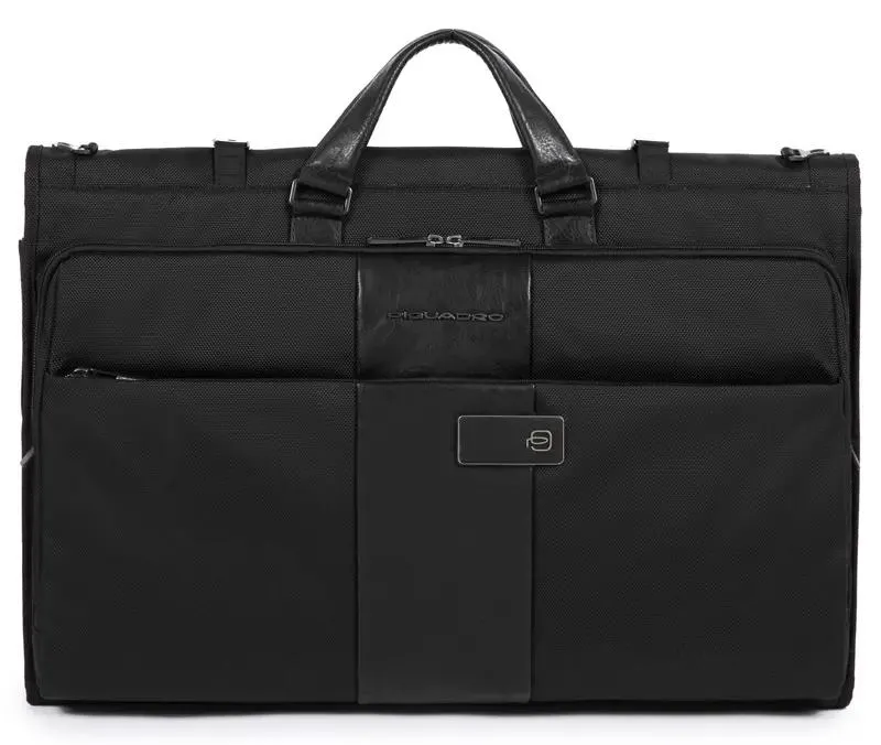 Стильный и функциональный портплед для костюма из коллекции Piquadro Brief. Изготовлен из износостойкого нейлона с кожаной отделкой. Имеет одно отделение с фиксирующими ремнями для костюма, внутренний и внешние карманы на молнии, ручки и съемный плечевой ремень для удобной транспортировки. Габариты портпледа подходят для провоза в салоне самолета в качестве ручной клади. На задней части предусмотрено крепление на ручку чемодана. Очень полезный аксессуар для путешествий и бизнес-командировок.
