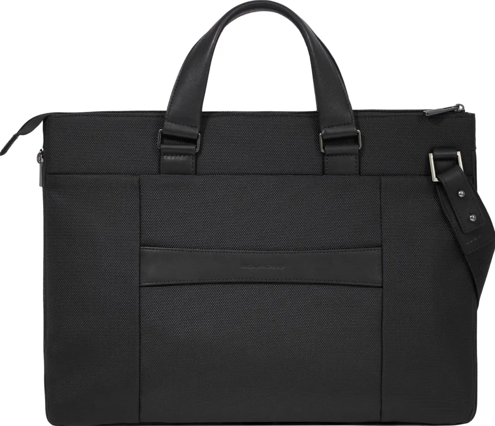 Стильная и надёжная сумка от компании Piquadro, из коллекции Brief2. Сумка имеет одно отделение с отсеком для 15,6 дюймового ноутбука и планшета. При необходимости ширину сумки можно увеличить до 10 см. На задней стенке сумки крепление для ручки чемодана. Съемный плечевой ремень в комплекте.