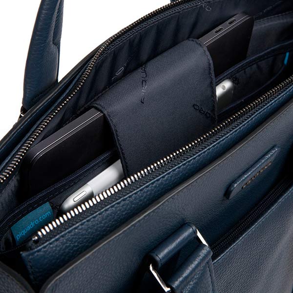 Кожаная вертикальная деловая сумка из коллекции Piquadro Modus Special, подойдет, как мужчинам, так и деловым женщинам. Имеет одно отделение на молнии с отсеком для 13,3 дюймового ноутбука и планшета, а также карманы для письменных принадлежностей и телефона. Универсальная система креплений и ремень позволяет использовать сумку, как рюкзак, либо носить её через плечо.