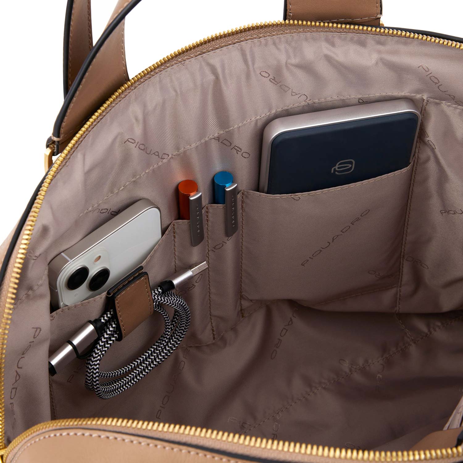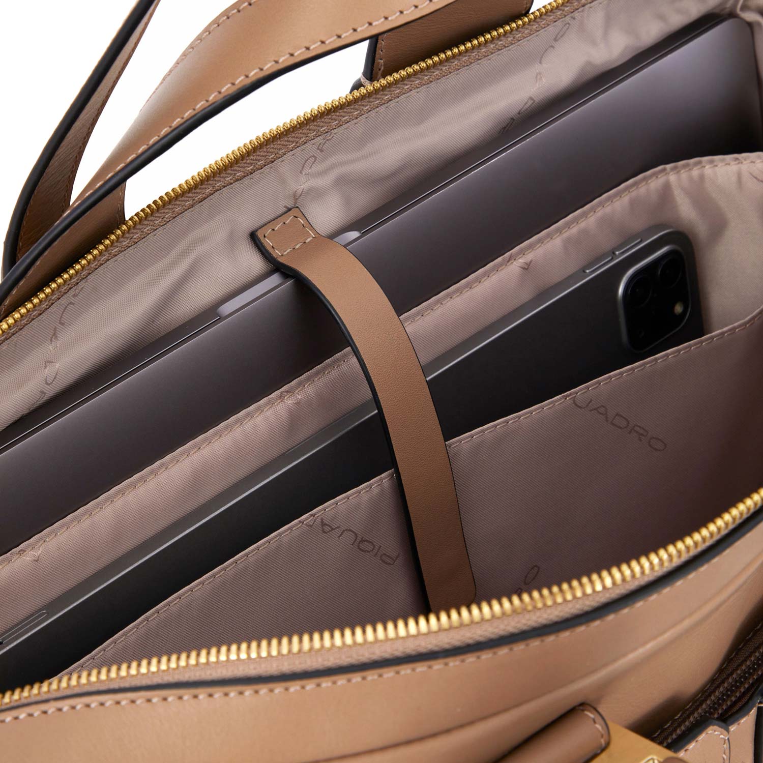 Сумка для ноутбука из коллекции Ray. Основное отделение закрывается на молнию. Внутри: отделение для ноутбука до 15,6 дюймов и планшета до 12,9 дюймов, карман для мобильного телефона, карман для мелочей, 2 держателя для пишущих инструментов. Снаружи на передней стенке дополнительный карман на молнии. Система крепления к ручке багажной сумки, которая очень удобна в частых путешествиях. Защитные металличские ножки.