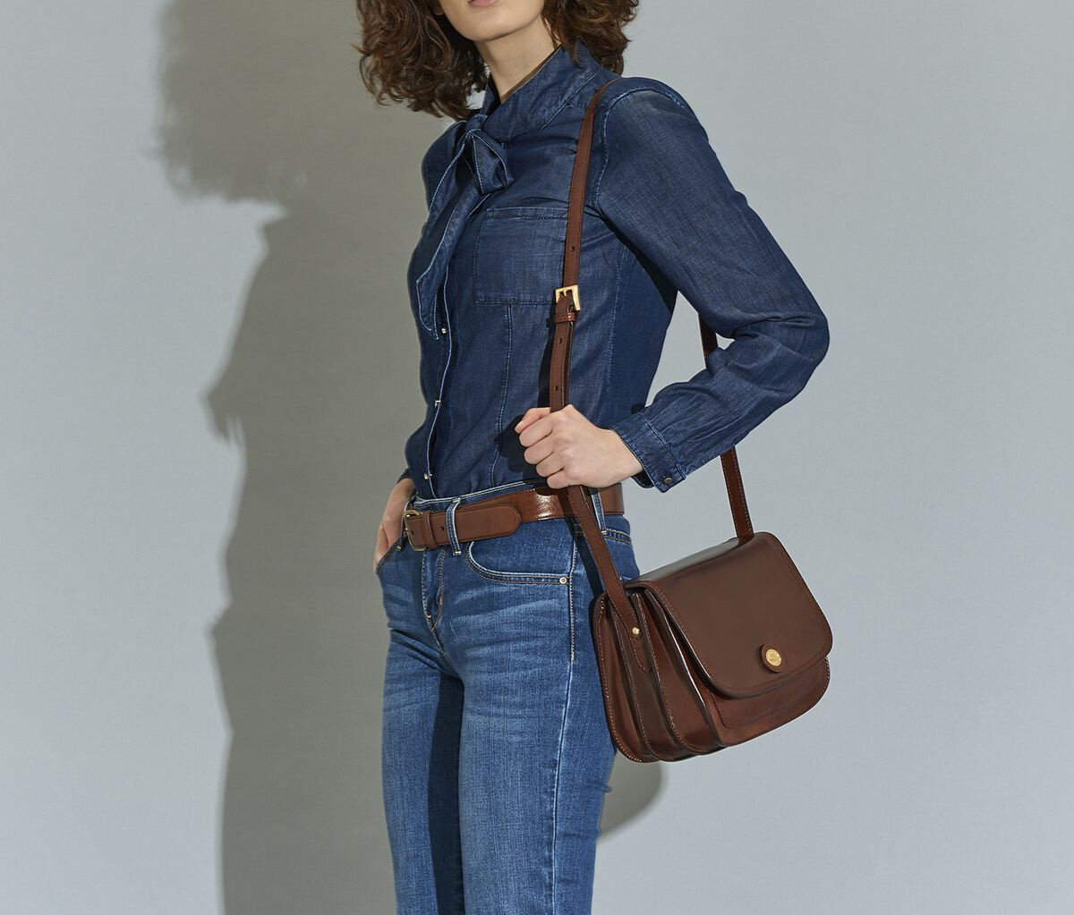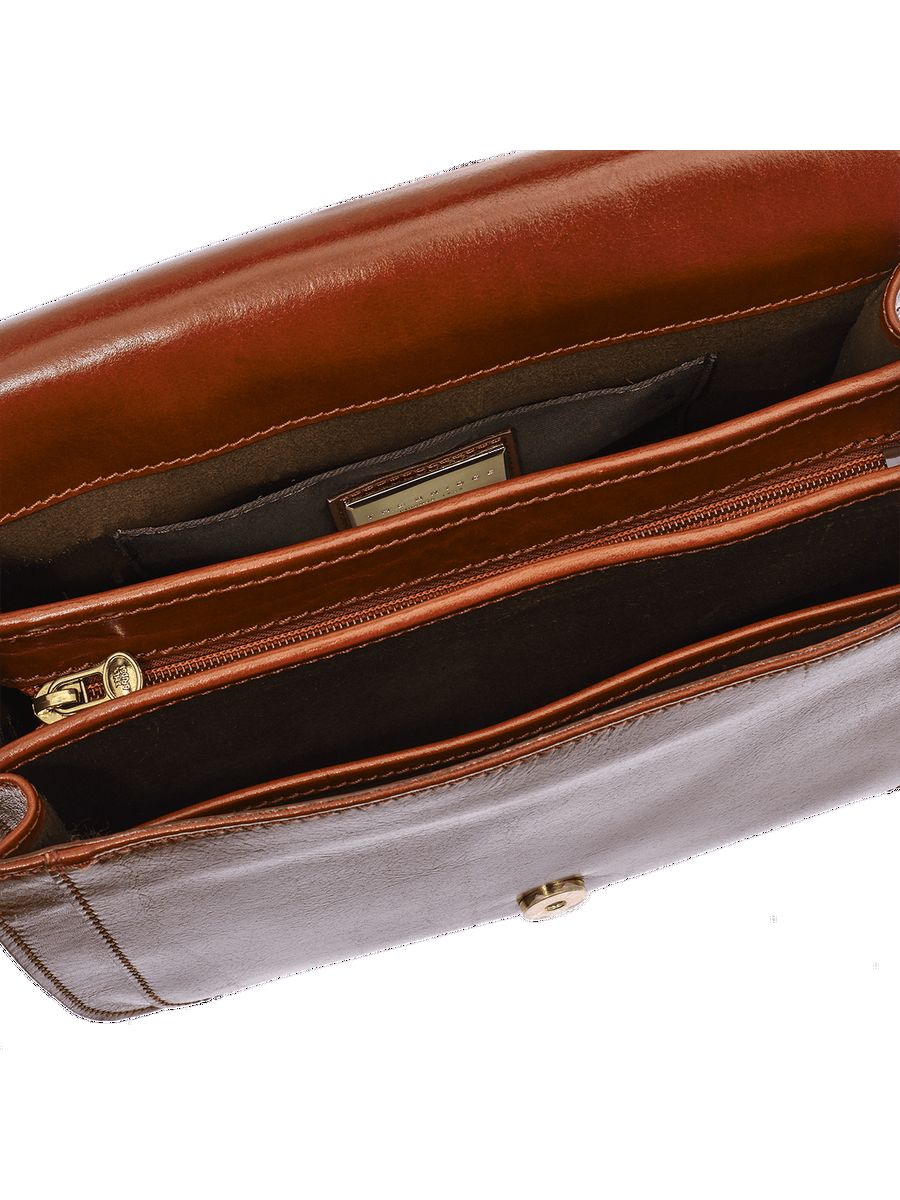 Сумка-мессенджер серии Story Donna - это компактная форма и лаконичный дизайн c минимумом декоративных деталей. Такое сочетание является отличным вариантом, соответствующим динамичному ритму современной жизни, который удачно вписывается в стиль casual, office, travel, street style. Дорогая итальянская кожа благородного коричневого цвета, дополненная золотистыми деталями отделки выглядит респектабельно, современно и стильно в независимости от эпохи, тенденций моды и трендов. Немаловажным достоинством модели является ее большая вместительность при весьма компактных размерах. Внутри сумки 3 отделения, 1 карман на молнии, 1 карман без застежки. Несъемный и регулируемый плечевой ремень.
