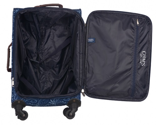 Дополнительно 4 двойных колеса с возможностью вращения на 360°. Выдвигающаяся телескопическая ручка из алюминия. Две накладные ручки (сверху и сбоку чемодана). Застежка-молния.