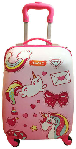 Крепкая молния не заедает во время расстегивания. Внутри основного вместительного отделения есть дополнительный карман для небольших предметов и специальные стяжные ремни для надежной фиксации вещей. Полезный объем чемодана MAGIO «Счастливый единорог», разноцветный (162) с жестким каркасом составляет 28 л. Детская модель оптимальна для перевозки багажа при передвижении на поезде, самолете, автомобиле.