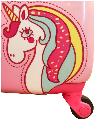 Чемодан MAGIO «Счастливый единорог», разноцветный (162) оснащен четырьмя колесами, которые вращаются на 360?. Это обеспечивает удобное передвижение модели по любой горизонтальной поверхности. Корпус произведен из качественного водонепроницаемого АБС-пластика. Материал очищается от загрязнений влажной салфеткой и характеризуется износостойкостью. Подкладка изготовлена из прочного полиэстера, не подверженного образованию повреждений и деформаций.