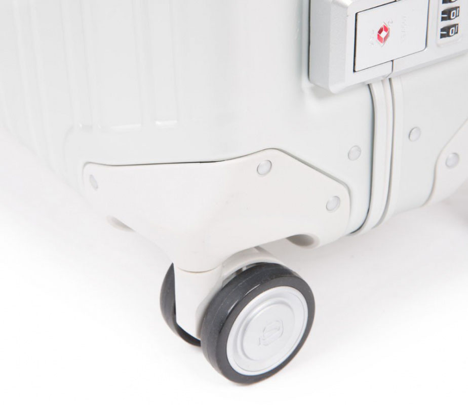Детали из телячьей кожи, двойной замок с функцией TSA и сдвоенные колеса на шарикоподшипниках Ball Bearing придают изделиям этой коллекции функциональность и шик. Объемное внутреннее пространство продуманно и практично организовано при помощи перегородок, оснащенных карманами на молниях. Отличается своим стилем и эксклюзивными характеристиками благодаря высококлассному анодированному алюминию, который привносит в дизайн корпуса чемоданов этой линейки утонченность и элегантность