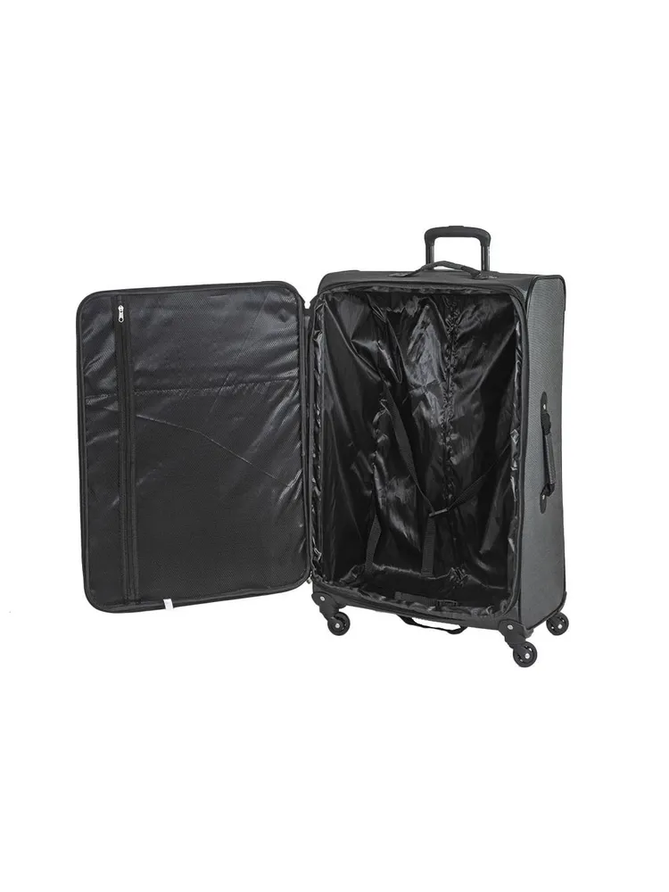 Легкий чемодан на колесах из прочной ткани станет идеальным компаньоном в поезд, в тур, в самолет, на отдых, в отпуск, в поездку на море, в лагерь, в дорогу, в командировку. Чемодан тканевый имеет хороший вместительный объем 60 литров. Чемодан очень удобный, семейный, изготовлен из прочного качественного полиэстера , оборудован 4 колесами с движением 360 градусов и надежной телескопической ручкой. Чемодан имеет 2 внешних отделения, большое внутреннее отделение с фиксирующими ремнями и карман на молнии для аксессуаров.