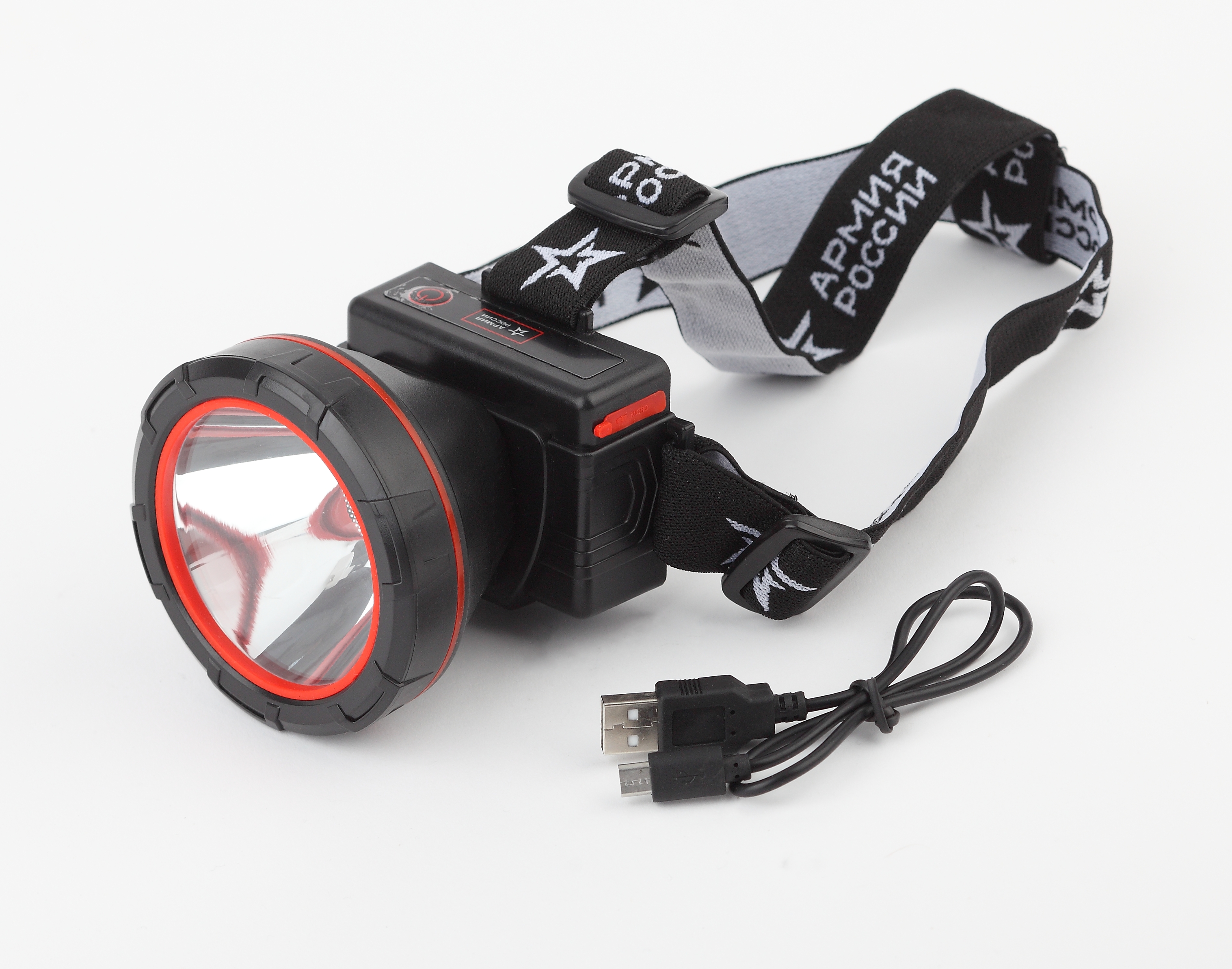 В комплекте эластичный брендированный ремешок с возможностью регулировки размера, что делает изделие абсолютно универсальным. Также вместе с фонарём поставляется компактный провод для удобной подзарядки от USB. Аккумулятор устройства - литиевый. Он обладает повышенной ёмкостью 1400 мАч и гарантирует более 6 часов непрерывной работы после одного полного заряда.