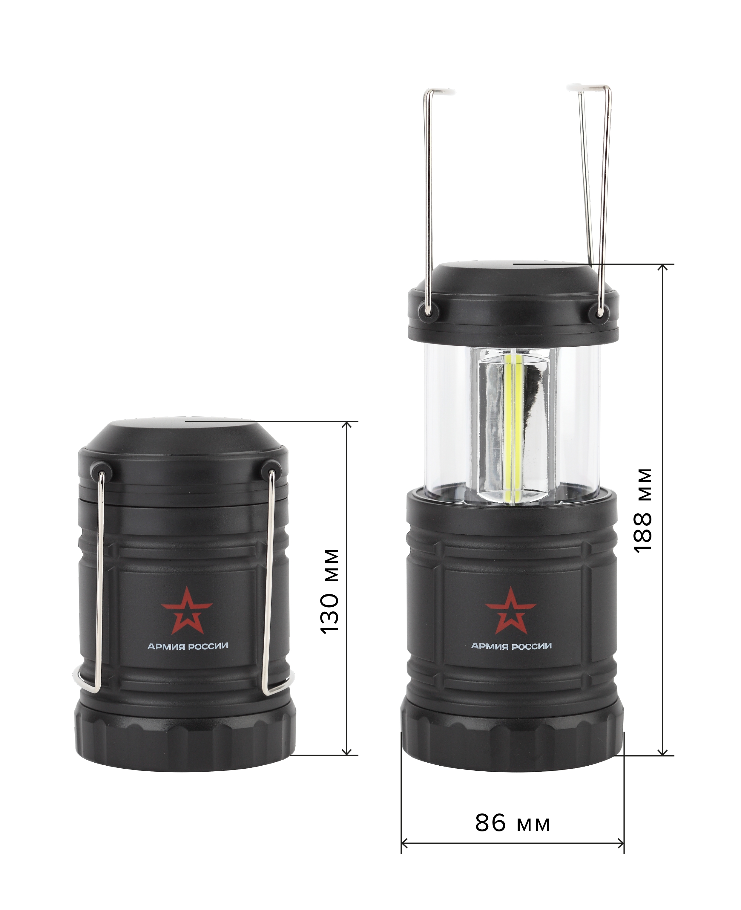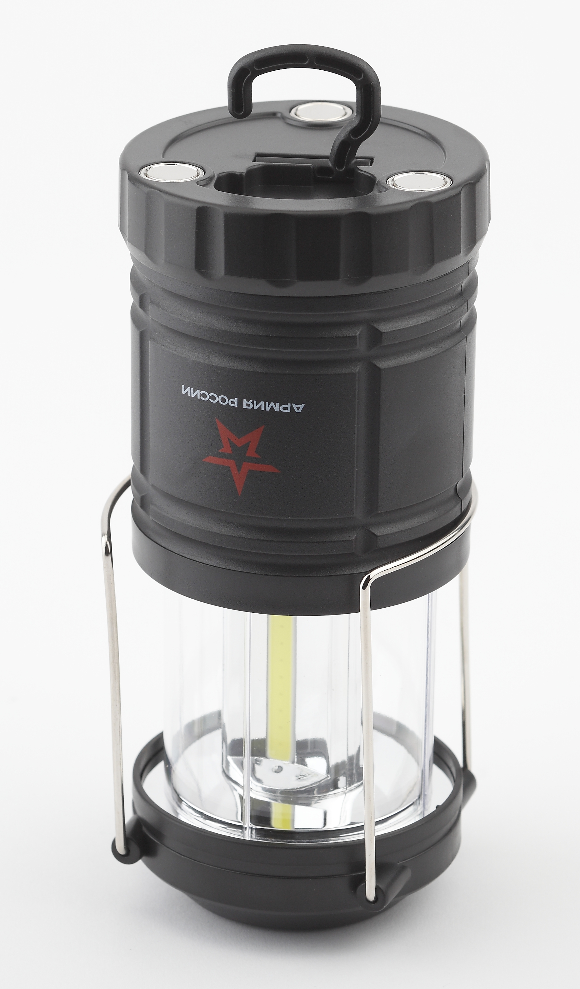 ЭРА Армия России ЗАРЯ - кемпинговый светодиодный фонарь-трансформер, изготовленный из экологичного и сверхлгкого пластика. Три в одном: 1. универсальный фонарь с ручками - удобно освещать дорогу; 2. устойчивый светильник, который можно поставить на столе для получения света и создания уютной атмосферы на привале; 3. светильник по типу уличного фонаря - подвешивается к разным типам поверхностей при помощи магнита или крючка.Светодиодная часть за считанные секунды "прячется" в корпус. Это защищает осветительные элементы от ударов и экономит место в рюкзаке. Яркий и плотный свет обеспечивают светодиоды СОВ ("мультикристалл на плате"). Технология, широко применяемая в промышленном освещении, теперь адаптирована для универсальных целей. ЭРА получила уникальный по качеству свет, который при своей повышенной яркости является комфортным для глаз. Дальность освещения - 13 метров, а одного заряда аккумулятора будет достаточно в тмное время суток - 9 часов непрерывной работы. Простой доступный формат питания фонаря - 3 пальчиковые батарейки. Серия фонарей ЭРА Армия России - совместный проект отечественного бренда ЭРА и АО "Военторг", действующего на основании лицензии Министерства обороны РФ.