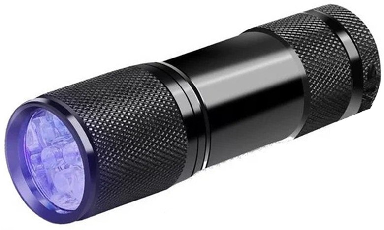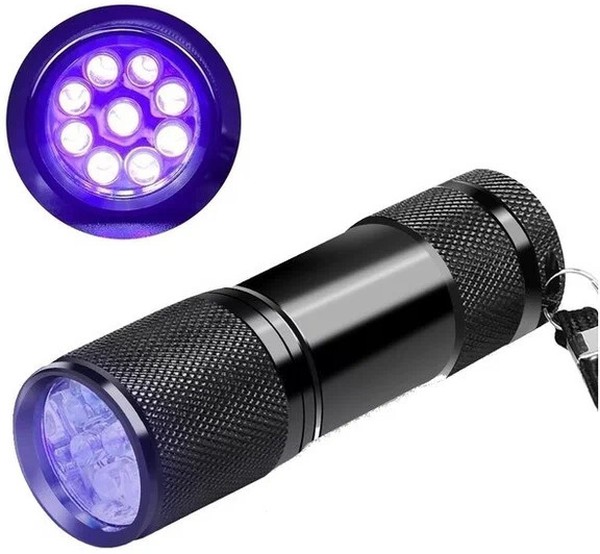 УФ-фонарь 9 диодов 395нм - ультрафиолетовый фонарь на 9-ти светодиодах, позволяющий подсвечивать вещи, видимые только в ультрафиолетовом диапазоне излучения (395нм): защитные элементы на денежных купюрах, невидимые глазом надписи и т.п.