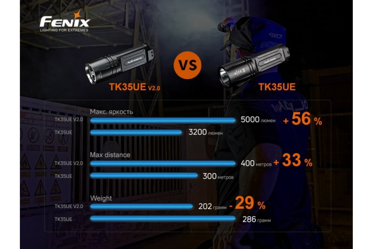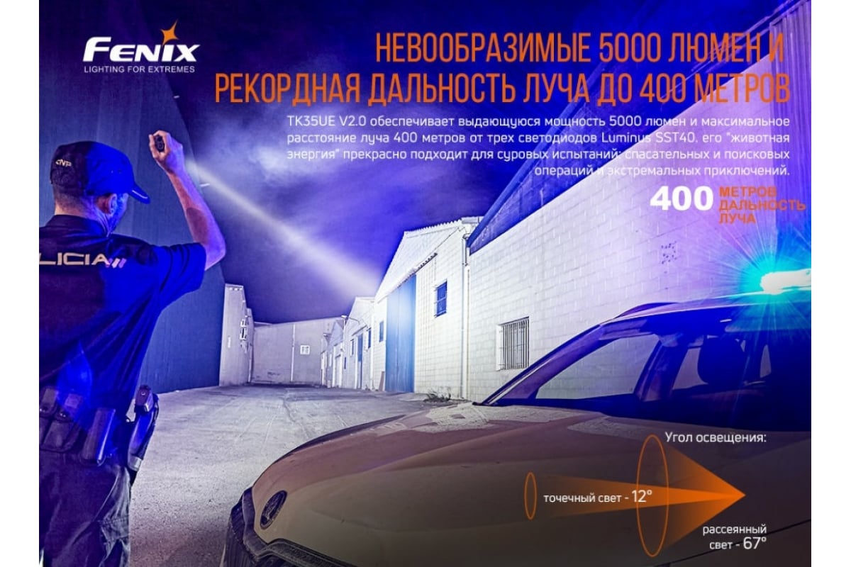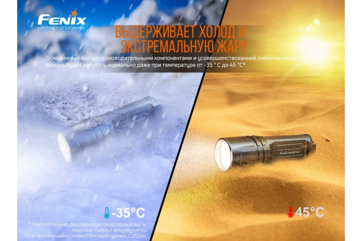 Фонарь Fenix tk35uev20 - мощный ручной фонарь с Тактической и Дежурной группами режимов как для сотрудников спецслужб, так и для опытных любителей активной деятельности на природе.